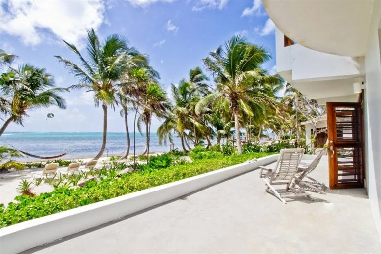 With the lowest population density in Central America, Belize is an ideal destination for vacationers looking for just a little extra room to relax. Featuring tropical forests, the world’s second-largest barrier reef, and accessible Mayan ruins, this culturally-varied country welcomes visitors and expats from around the world. Enjoy an average yearly temperature of 84° in this lagoon-view home, with its expansive island and kitchen for entertaining, locally-inspired decor, unique semi-circular upper-floor living area, and 14’ palapa roof. Just north of San Pedro Town, this property includes 75 feet of ocean frontage, and plenty of opportunities to sip rum on the patio while watching the palm trees bend in the breeze.