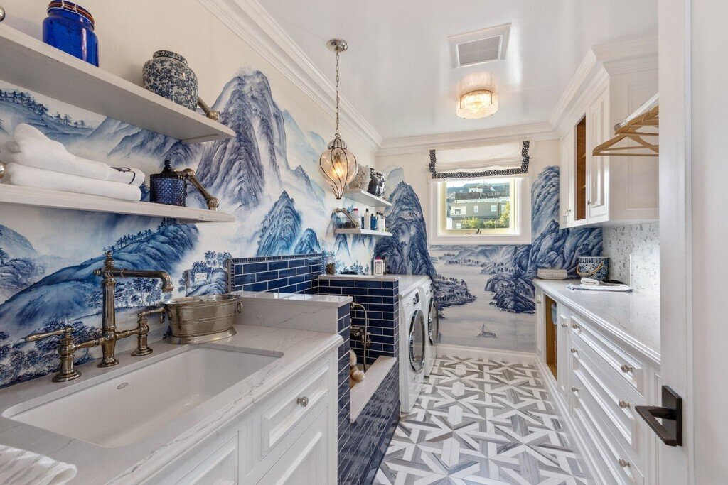 Nothing adds a vitality to a room quicker than an eye-catching pattern. Large, geometric tiles used as a backsplash or on the floor dial up a room’s energy. Concerned about whether a bold pattern will work in your space? It’s advisable to use large patterns in large spaces and smaller patterns in enclosed spaces to avoid an overwhelming effect. But that’s not a steadfast rule: the laundry room above throws caution to the wind and embraces all sides of the pattern spectrum to create an immersive experience.
