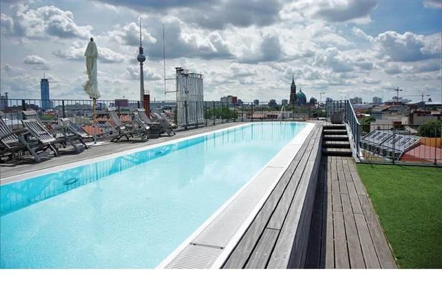 Her office is selling a 4,843-square-foot, five-bedroom duplex penthouse apartment in Mitte for €12 million euros. It has an indoor pool and a rooftop outdoor pool, which is surrounded by a decked terrace with sweeping views of Berlin.