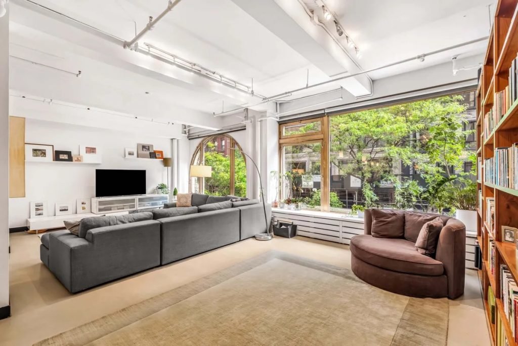 This cooperative residence in Chelsea’s 1926 Capitol Building features all the hallmarks of a classic loft. The open-plan great room—which boasts soaring ceilings and an oversized arched bronze window—offers space for living and dining as well as a kitchen with top-tier appliances and a walk-in pantry. Beyond are a peaceful primary suite with a walk-in closet and a bath with a soaking tub and a shower, two guest suites, a den, and an office. The shared rooftop terrace affords an enviable skyline vista.