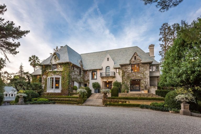 This magnificent French Normandy inspired chateau is situated at the end of a private, gated drive on nearly two acres. Amazing craftsmanship defines this romantic residence, featuring dramatic finishes and rare imported materials. The living room extraordinaire, elegant formal dining room, and chic atrium accommodate large and small groups, while a spacious chefs’ kitchen exudes the essence of Provence. The grounds are replete with specimen trees, a two-story spectacular pool house, beautiful sparkling pool, two guest cottages, and parking to accommodate hundreds of guests.