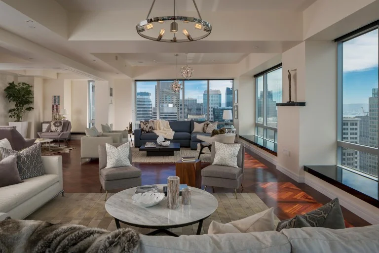 The approximately 4,600-square-foot Grand Penthouse A is commandingly sited atop the iconic Four Seasons Hotel & Residences in San Francisco. Illuminated by large-walls of glass facing East, North and West, the triple-mint Grand Penthouse features panoramic “sunrise to sunset” views of landmarks such as the San Francisco Bay, SFMOMA, the Financial District, Alcatraz and City Hall. Elegant and thoughtfully designed, the Grand Penthouse floor plan enables elevated daily living and lavish entertaining. A dramatic Foyer and Gallery connect public and private spaces. An extraordinary great room with metropolitan views blends living, dining and library areas. Southwestern views and sunlight flood the eat-in kitchen neighboring a spacious, adjoining family room.