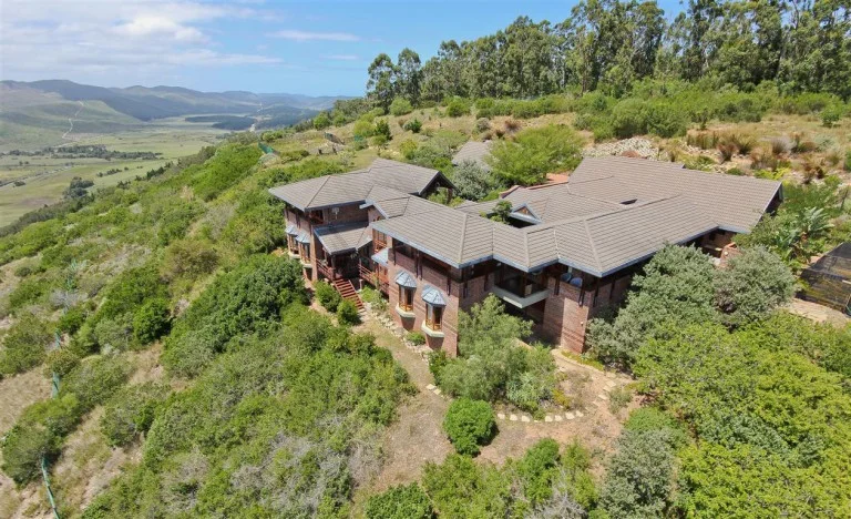 Situated just over the hill from Sedgefield, this home is nestled amongst nature on a 37-hectare property and extends right down to the water’s edge. The property is easily accessed by a wide, redbrick road which leads to the expansive north facing home. A beautifully paved parking area, which can accommodate a number of parked vehicles, has access to four extra-large garages. The terraced garden leads down to a central covered courtyard which has a water element and stained glass insets in the ceiling. It is secured with handcrafted and ornate steel perimeter. The courtyard flows out to a separate, gourmet-styled, industrial-sized kitchen with granite counter tops and a serving hatch that gives you access to the dining room through stained glass doors.