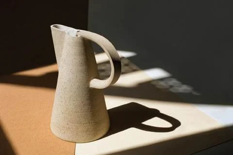 Her ceramics, wheel-thrown or hand-built, take on an angularity, structuraland graphic quality. “Most of the inspiration for my ceramics comes from architecture,” says Herrera, including Brutalist buildings in Colombia and parallel forms in New York City. Much of her art, created under the brand High Gloss, which she launched in 2013, has a practical use, such as stacking cups without handles that work to conserve cupboard space.